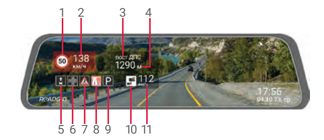 - Встроенный GPS-модуль с регулярно обновляемой базой фиксированных камер и комплексов контроля скорости заранее предупреждает голосом и на экране о радарах, «Автодории», камерах на выделенные полосы и других объектах.