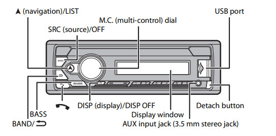 Дисплей с белой подсветкой и чёткими символами удобно отображает всю необходимую информацию о треке, радиостанции или настройках. Кнопки управления подсвечиваются синим цветом, что делает работу в тёмное время суток комфортной.