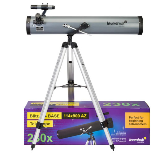 Телескоп Levenhuk Blitz 114 BASE 77103 - это рефлектор Ньютона с 114-миллиметровым сферическим главным зеркалом и очень богатой комплектацией. Отличный выбор для первого телескопа, если вы только начинаете знакомиться с астрономией и хотите наблюдать как объекты Солнечной системы, так и глубокий космос.