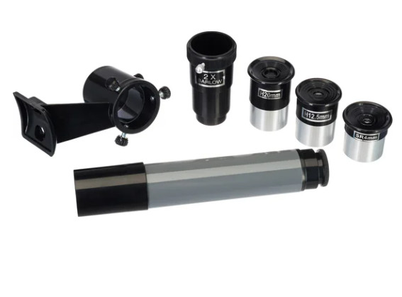 Оптика выполнена из стекла с многослойным антибликовым покрытием, благодаря чему изображение получается ярким, контрастным и без заметных искажений. В комплекте уже есть всё необходимое для старта: три окуляра и линза Барлоу. При желании телескоп легко расширяется - фокусер совместим со всеми стандартными аксессуарами посадочного диаметра 1,25".