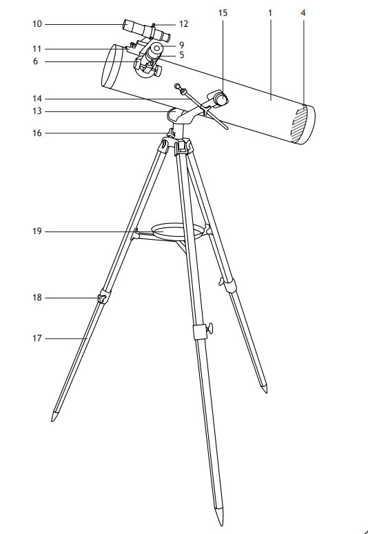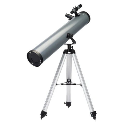 Удобная вилочная азимутальная монтировка оснащена микрометрическим винтом, что позволяет очень точно наводить и плавно вести телескоп по объекту. Прочная алюминиевая тренога регулируется по высоте и снабжена удобной полкой для хранения аксессуаров.